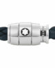 La boucle en acier inoxydable poli, subtilement ornée de l’emblème Montblanc, apporte un contraste harmonieux au cuir et capte la lumière avec discrétion. Ce détail illustre le soin apporté à chaque élément de sa conception.