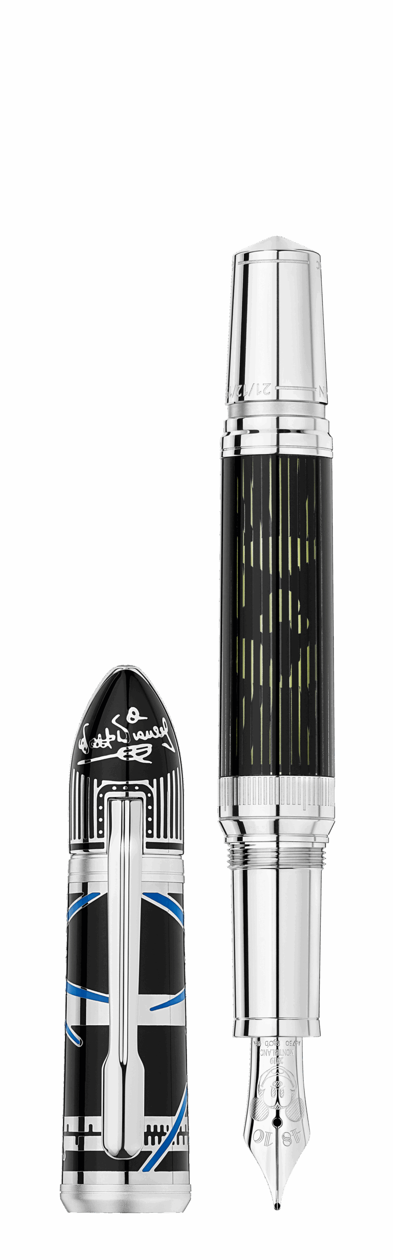 Le nom de Walt Disney est à jamais lié à l’art du dessin animé et de l’histoire du cinéma américain. Depuis son désir originel de parfaire la technique de création des dessins animés, un véritable empire s’est créé et a su prendre des proportions inimaginables. Né à Chicago en 1901, Walter Elias Disney s’est démarqué par sa créativité et son esprit pionnier, qui lui ont permis de devenir l’un des producteurs de films les plus influents et admirés de son temps. Disponible en seulement 1 901 exemplaires, cet instrument d’écriture rend hommage à Walt Disney. La forme de l’instrument d’écriture est inspirée du légendaire système monorail, tandis que le capuchon présente une caméra multiplane laquée, popularisée par Disney. La gravure sur le cône platiné de la Limited Edition 1901 commémore Blanche Neige, avec les spécifications techniques (1.33:1, 83 MIN) ainsi que la date et le lieu de l’avant-première mondiale (21/12/1937, LA).